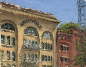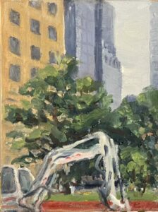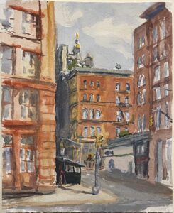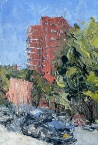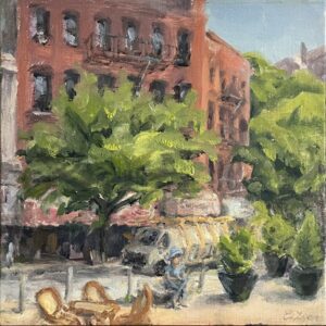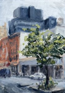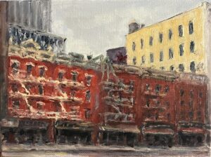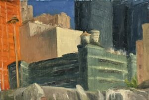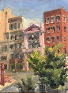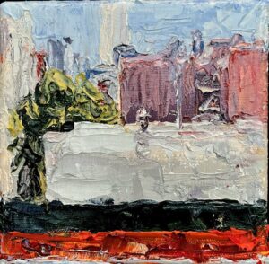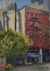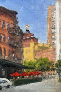 Small, quick paintings usually done by setting my easel up on a street corner somewhere in NYC. Most of the oil paintings are tiny, sometimes done on scraps of unstretched canvas and then mounted on panels later.