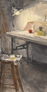 Mostly done at the Art Students League, instead of painting a planned class subject, I take a step back and paint the surroundings.