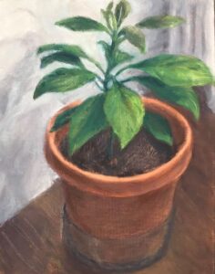Starting in 2020, moved inside and started painting my houseplants, the interior of the house, and the various bits of debris that piled up around us.